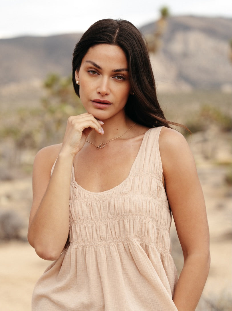 Garments are measured lying flat and based on full circumference. Pieces with shirred waistbands are designed to stretch, providing a flexible, true-to-size fit.